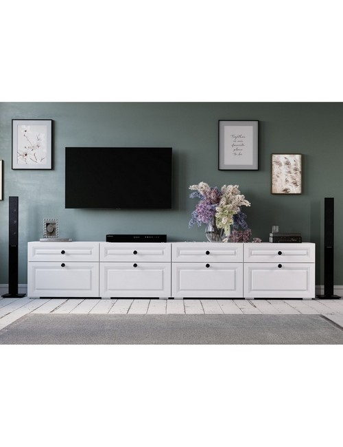 Технические характеристики: Тумба под ТВ Софт ТБ-07 комплект (белый, эмаль белая). Готовый комплект из двух одинаковых модульных тумб, который позволяет создать симметричную, стильную и невероятно функциональную систему хранения для медиазоны. Идеальное решение для современных гостиных, где важны порядок, вместительность и лаконичная эстетика. Устойчивые пластиковые подпятники, защищающие пол от царапин. Все выдвижные ящики оснащены шариковыми направляющими плавного движения для бесшумной и легкой эксплуатации. Каждая из двух тумб содержит четыре выдвижных ящика - нижние увеличенной высоты. Максимальная нагрузка на каждый ящик - 5 кг. Чистый белый цвет и строгие формы делают комплект универсальным для любого светлого интерьера в стиле минимализм, скандинавский или современная классика. Тумба под ТВ Софт ТБ-07 комплект - это идеальное сочетание модульности, огромной вместимости и стильного дизайна для создания безупречно организованного и эстетичного пространства.