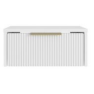 Особенности: Фрезеровка Волна на фасаде тумбы. . Эффектные торцевые ручки-язычки. Шариковые направляющие. Максимальная нагрузка на ящик 5 кг. Cтиль Тумбы подвесной Хилл современный.