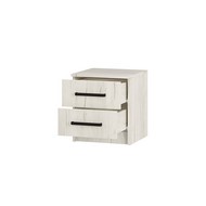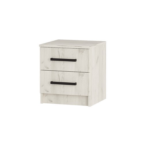 Особенности: Компактная прикроватная тумба Фиеста (дуб крафт белый) с двумя выдвижными ящиками. Роликовые направляющие ящиков. Пластиковая ручка-накладка 192 мм. Максимальная нагрузка на ящик 5 кг.