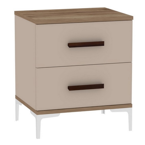 Особенности Тумбы прикроватной Кара: Тумба с двумя ящиками в спальню. Фигурные металлические опоры. Шариковые направляющие плавного выдвижения. Низ и столешница из контрастной плиты ЛДСП.