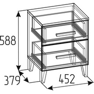 Технические характеристики: Прикроватная тумбочка с двумя выдвижными ящиками. Ручки из массива дерева. Горизонтальные щиты из ЛДСП толщиной 22 мм. Ящики глубиной 30 см оснащены шариковыми направляющими полного выдвижения. Плавное выдвижение и бесшумность хода.