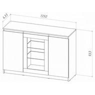 Ширина, см: 135. Высота, см: 93,3. Выступ, см: 43,3. Размер упаковки, (мм): 1400x485x95, 960x575x85. Вес (кг): 58. Компоненты, входящие в комплект: 3 дверцы, 6 полок. Стиль: модерн. Страна-производитель: Россия. Объем (м3): 0.11. Основной цвет: разноцветная. Материал фасада: ЛДСП Е1, стекло. Материал корпуса: ЛДСП Е1. Тип поверхности корпуса: матовый. Место размещения: Пол. Помещение: Гостиная,Кабинет. Гарантия (месяц): 24. Основное помещение: Гостиная. Цвет корпуса: дуб вотан. Цвет фасада: дуб вотан.