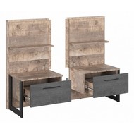 Ширина, см: 51,7. Высота, см: 100,3. Выступ, см: 41,3. Размер упаковки, (мм): 515x1000x65, 515x1000x65. Компоненты, входящие в комплект: тумбочка:, 1 ящик, 1 полка, тумбочка:, 1 ящик, 1 полка. Стиль: модерн. Страна-производитель: Россия. Объем (м3): 0.07. Количество секций для хранения: 2. Основной цвет: разноцветная. Материал фасада: ЛДСП Е1. Материал корпуса: ЛДСП Е1,металл. Тип поверхности корпуса: матовый. Место размещения: Пол. Помещение: Спальня. Гарантия (месяц): 24. Основное помещение: Спальня. Цвет корпуса: дуб гранж, черный. Цвет фасада: железный камень.