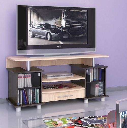 Технические характеристики: ТВ-тумба оснащена двумя отделениями с стеклянной дверью, одним выдвижным ящиком и одной полкой. Поставляется в разобранном виде.