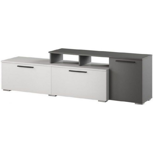 Технические характеристики: Тумба для телевизора диагональю от 50 дюймов (111 см). Выполнена в сочетании двух цветов - белый и графит серый. Оснащена закрытыми отделениями и двумя сквозными нишами для ТВ-техники. Цвет может незначительно отличаться от представленного на фотографии.
