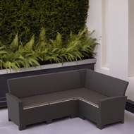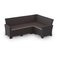Особенности: Угловой садовый диван Калифорния это удобное и стильное решение для отдыха на открытом воздухе. Диван Г-образной формы, рассчитан на четыре персоны и изготовлен из высококачественного пластика под ротанг. Максимальная нагрузка на диван 600 кг, на одно место 150 кг. Дизайн пластика под ротанг придает дивану естественный вид и гармонично сочетается с любым ландшафтом. Пластик устойчив к погодным условиям, что гарантирует долговечность дивана. Прочные ножки обеспечивают устойчивость на любой поверхности. Диван легко собирается и разбирается, что удобно при сезонном использовании. В комплект входят подушки для сидения, обеспечивающие дополнительный комфорт.