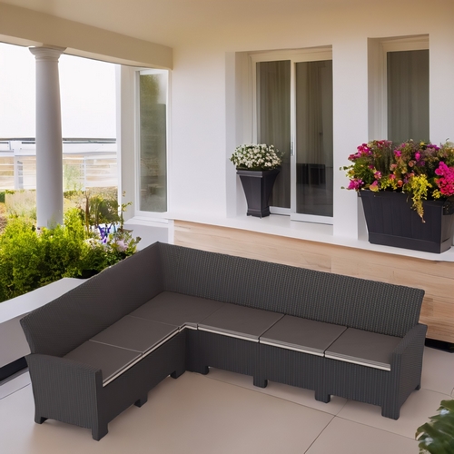 Особенности: Угловой садовый диван Калифорния – это удобное и стильное решение для отдыха на открытом воздухе. Диван Г-образной формы, рассчитан на шестьчеловек и изготовлен из высококачественного пластика под ротанг. Максимальная нагрузка на диван – 900 кг, на одно место – 150 кг. Дизайн пластика под ротанг придает дивану естественный вид и гармонично сочетается с любым ландшафтом. Пластик устойчив к погодным условиям, что гарантирует долговечность дивана. Прочные ножки обеспечивают устойчивость на любой поверхности. Диван легко собирается и разбирается, что удобно при сезонном использовании. В комплект входят подушки для сидения, обеспечивающие дополнительный комфорт.