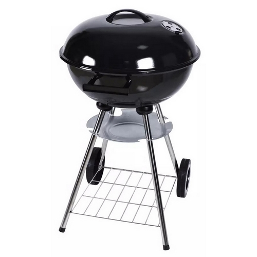 Технические характеристики: Портативный угольный гриль барбекю Grill BBQ на колесиках. Эмалированное покрытие крышки и чаши. Полка в нижней части для готовой еды или ингредиентов. Полка для хранения угля или древесины. Ручка и колеса для удобного перемещения гриля. Легкий монтаж и чистка.