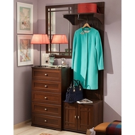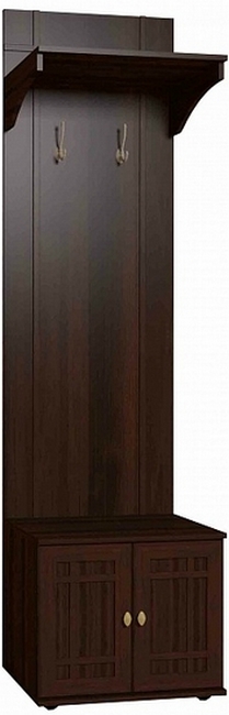Технические характеристики: Вешалка оснащена: тумбой для обуви, двумя крючками для одежды и полкой для головных уборов. Регулируемые опоры. Вешалка крепится к стене за подвесы.