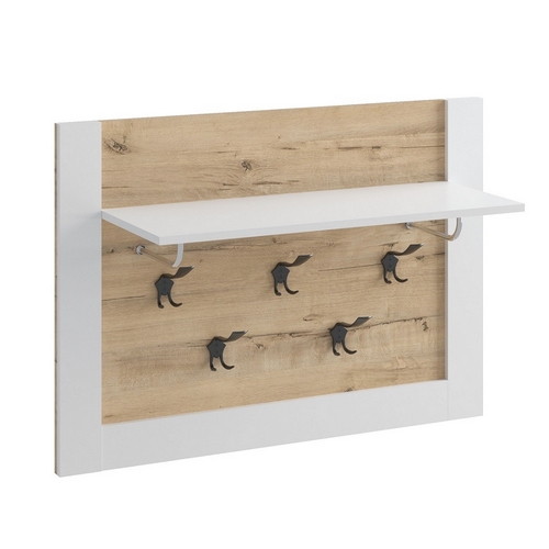 Особенности Вешалки настенной Ева: Компактная настенная вешалка с крючками и полкой для небольшой прихожей. Долговечная металлическая фурнитура черного цвета.