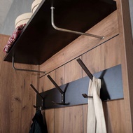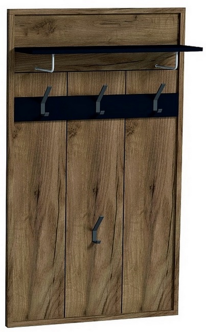 Технические характеристики: Вешалка оснащена полкой для головных уборов и крючками для верхней одежды и сумок. Металлические крепкие крючки выдерживают нагрузку до 5 кг. Верхняя полка глубиной 22,9 см крепится с помощью Г-образного полкодержателя. Вешалка крепится на стену за подвесы.