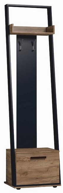 Технические характеристики: Вешалка сочетает в себе открытую вешалку для верхней одежды и тумбу для обуви, также есть полка для головных уборов. Регулируемые опоры, которые помогут компенсировать неровности пола. Металлические крючки с допустимой нагрузкой 5 кг. Откидной фасад тумбы дополнительно фиксируется при закрывании магнитной защелкой. Ручка из массива дерева.