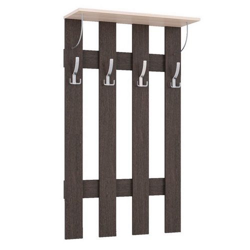 Особенности Вешалки Ямайка: Вешалка состоит из панелей ЛДСП, соединенных между собой надежными креплениями, 4-х крючков и открытой полки-антресоли. Подходит для малогабаритных помещений. Простота конструкции. Надежные крепления. 4 прочных крючка.