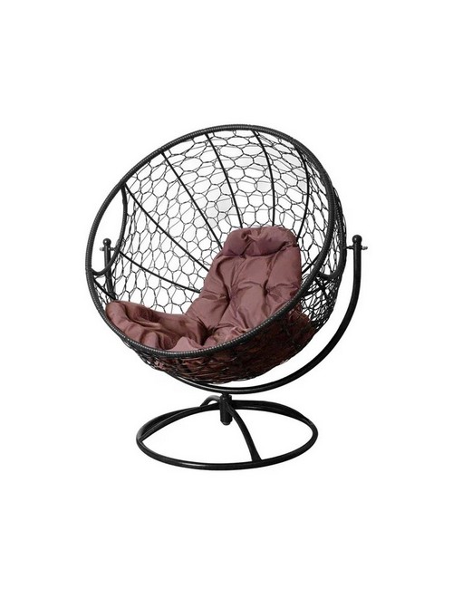 Вращающееся кресло с ротангом (черное с коричневой подушкой)