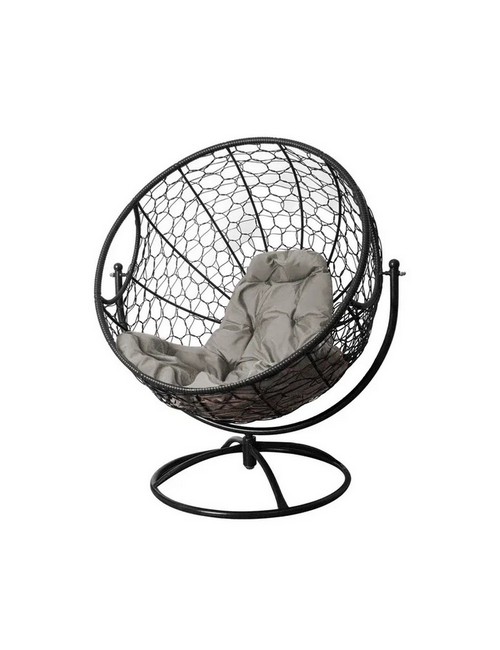 Вращающееся кресло с ротангом (черное с серой подушкой)