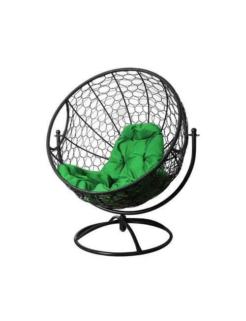 Вращающееся кресло с ротангом (черное с зеленой подушкой)