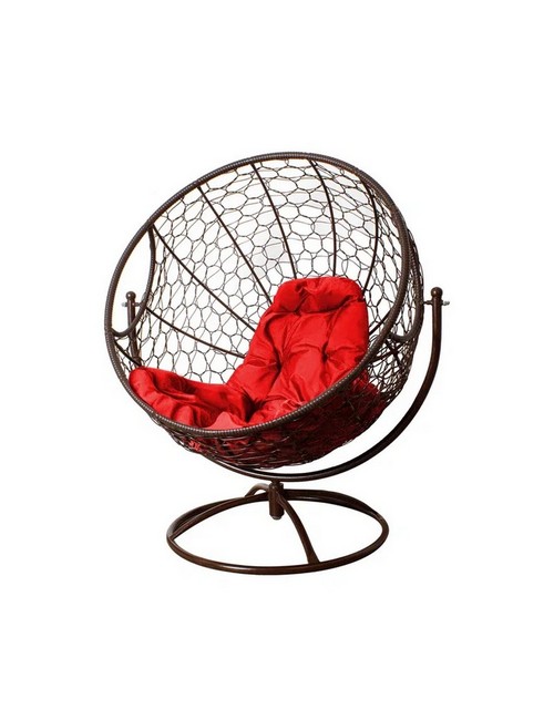 Вращающееся кресло с ротангом (коричневое с красной подушкой)