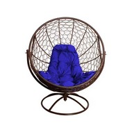 Вращающееся кресло с ротангом (коричневое с синей подушкой)