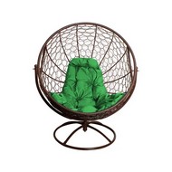 Вращающееся кресло с ротангом (коричневое с зеленой подушкой)