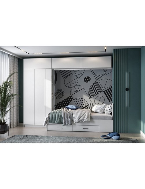 Технические характеристики: Детская Бали комплект 4. Создайте идеальное пространство для вашего ребенка с гарнитуром Бали - гармоничным сочетанием функциональности, комфорта и стиля. Набор включает все необходимое для обустройства уютной и практичной детской комнаты: кровать детская с выдвижными ящиками, угловое завершение, три навесных шкафа и двухстворчатый шкаф. Вместительные выкатные ящики для организации хранения с прочными роликовыми направляющими для плавного открывания. Шкаф со стационарной штангой для удобного хранения одежды. Рекомендуемая нагрузка на спальное место - до 90 кг. Размер спального места 90*200 см, матрас для кровати в комплект не входит. Детская Бали комплект 4 - это готовое решение для создания комфортной и организованной среды, где каждая деталь продумана для удобства и гармоничного развития вашего ребенка.