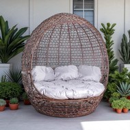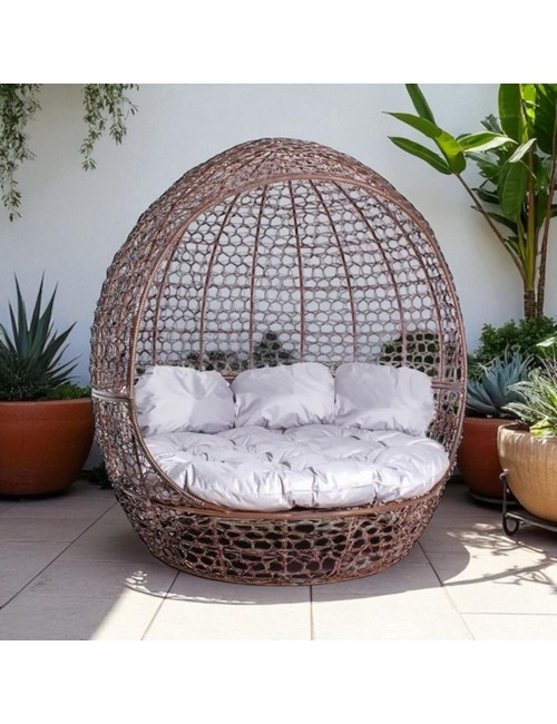 Технические зарактеристики: Диван Комфорт Купол (коричневый, серый). Диван Комфорт Купол - это уют и стиль в вашем саду. Оригинальный дизайн в форме купола создает атмосферу уединенности. Металлический каркас с порошковым покрытием обеспечивает защиту от коррозии и погодных условий. Оплетка из искусственного ротанга придает дивану элегантный вид. В комплекте большая круглая подушка и три декоративные подушки для максимального комфорта. Непромокаемая ткань Оксфорд 600 чехлов подушек гарантирует их долговечность и легкость в уходе. Идеальное место для отдыха на свежем воздухе и стильное дополнение к вашему интерьеру. Устойчив к ультрафиолету и перепадам температур.