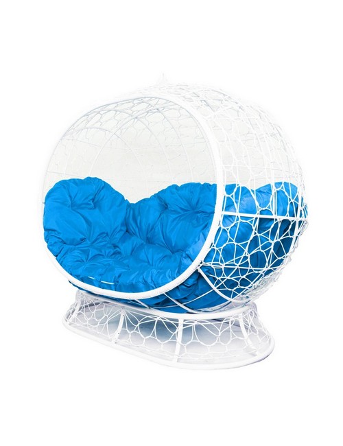 Диван УЛЕЙ на ножках с ротангом (белый с голубой подушкой)