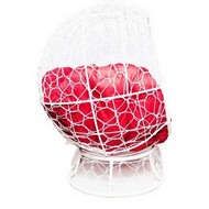 Диван УЛЕЙ на ножках с ротангом (белый с красной подушкой)