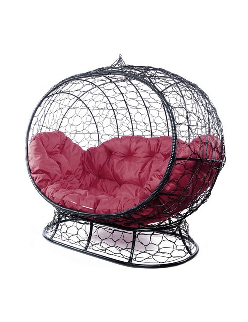 Диван УЛЕЙ на ножках с ротангом (черный с бордовой подушкой)