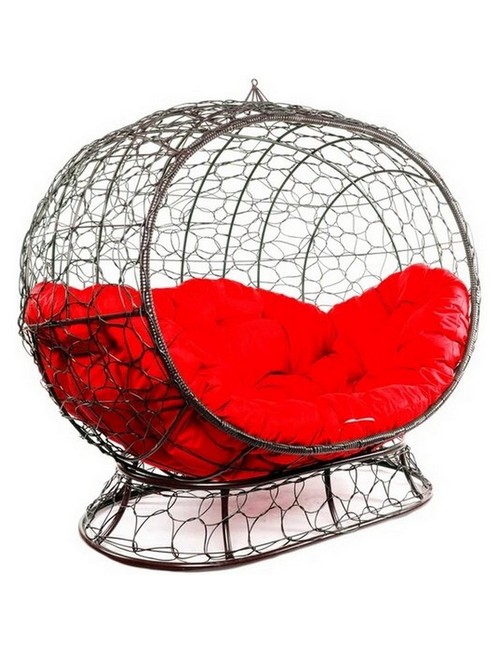 Диван УЛЕЙ на ножках с ротангом (коричневый с красной подушкой)