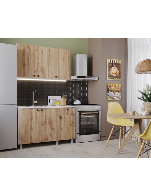 Ширина, см: 120. Высота, см: 209. Выступ, см: 60. Вес (кг): 71. Стиль: модерн. Страна-производитель: Россия. Объем (м3): 0.134562. Основной цвет: разноцветная. Материал фасада: ЛДСП Е1. Материал корпуса: ЛДСП Е1. Тип поверхности корпуса: матовый. Дополнительные параметры: высота верхних тумб - 690 (мм) глубина верхних тумб - 305 (мм) высота нижних тумб - 818 (мм) глубина нижних тумб - 426 (мм) толщина столешницы - 28 (мм) глубина столешницы - 600 (мм). Место размещения: Пол,Стена. Помещение: Кухня. Гарантия (месяц): 24. Основное помещение: Кухня. Цвет корпуса: белый. Цвет фасада: дуб вотан.