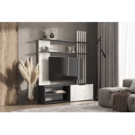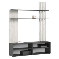 Особенности: Гостиная Роджина (дуб крафт белый, графит) — это изысканный элемент мебели. Секция предназначена для установки телевизора и оснащена полками. Металлические ручки. Пластиковые опоры. Регулируемые ножки.
