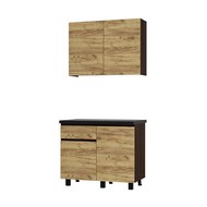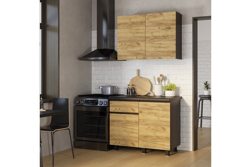 Особенности: Корпус/фасад – ЛДСП венге/ЛДСП дуб крафт. В комплекте столешница «черный янтарь». Отсутствие внешней фурнитуры. Роликовые направляющие на ящиках. Максимальная нагрузка на полку 10 кг. Максимальная нагрузка на ящик 5 кг.
