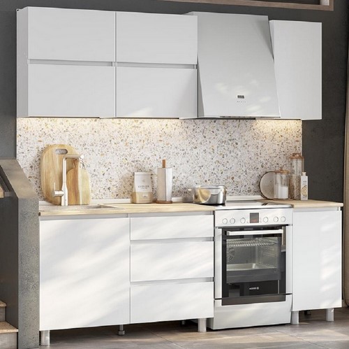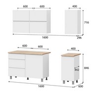Особенности: Готовая кухня Токио 1.6 м в комплекте со столешницей. Кухонный гарнитур не имеет ручек, их роль выполняют скосы под 45 градусов на нижних модулях и выступы на фасадах навесных шкафов, что экономит пространство. Петли без доводчиков. Роликовые направляющие ящиков. Нижние модули комплектуются столешницей 26 мм.