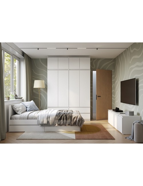 В комплекте: Кровать 1,4 м Симпл КР-12 (белый) - ARN-BTS-00-00164604 - 1 шт. Шкаф двухстворчатый Симпл ШК-03, белый - ARN-BTS-00-00143421 - 2 шт. Тумба Симпл ТБ-06, белый - ARN-BTS-00-00143415 - 2 шт. Тумба под телевизор Симпл ТБ-19, белый - ARN-BTS-00-00143417 - 1 шт.