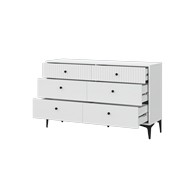 Технические характеристики: Комод 6-ящиков MOON КМ-3.1 (белый). Современный комод, отличающийся элегантным дизайном и безупречной функциональностью. Модель выполнена в классическом цвете, что позволяет ей гармонично вписаться в любой интерьер - от спальни до гостиной. Комод MOON КМ-3.1 оснащен шестью вместительными выдвижными ящиками, что обеспечивает удобное разделение пространства для хранения различных категорий вещей. Элегантные металлические ручки добавляют модели стильный акцент и обеспечивают комфортное использование. Петли с доводчиком для плавного и бесшумного закрывания. Направляющие ящика - шариковые. Металлические ножки высотой 15 см. Комод 6-ящиков MOON КМ-3.1 - это гармоничное сочетание стильного дизайна, качественной фурнитуры и продуманной организации пространства, которое станет практичным и эстетичным дополнением вашего интерьера.