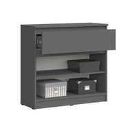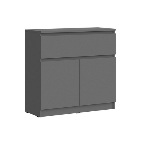 Особенности: Комод Челси 800 1 ящик 2 двери (графит) в современном дизайне. Вместительные ящики и полки позволят организовать место хранения всех необходимых предметов. Количество ящиков - 1 шт. Направляющие ящиков - шариковые. Максимальная нагрузка на поверхность - 15 кг. Максимальная нагрузка на ящик - 5 кг. Опоры - пластиковые.