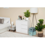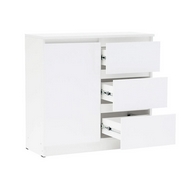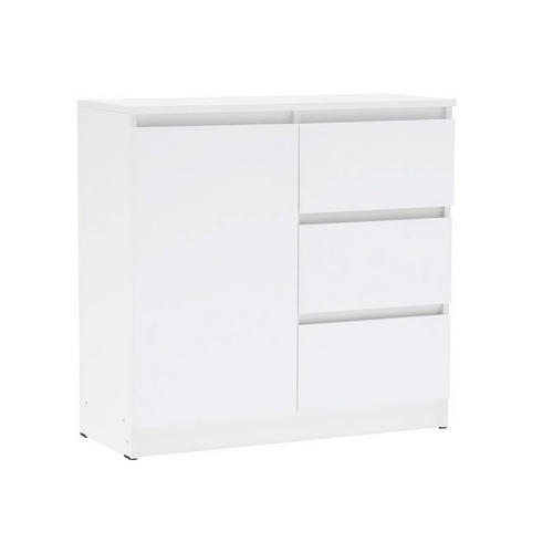 Особенности: Комод Челси 800 3 ящика 1 дверь (белый глянец холодный, белый) в современном дизайне. Вместительные ящики и полки позволят организовать место хранения всех необходимых предметов. Количество ящиков - 3 шт. Направляющие ящиков - шариковые. Максимальная нагрузка на поверхность - 15 кг. Максимальная нагрузка на ящик - 5 кг. Опоры - пластиковые.