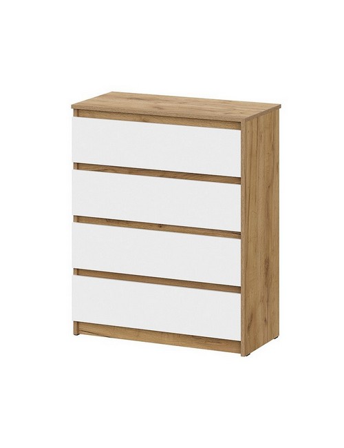 Технические характеристики: Комод Денвер (дуб золотистый, белый). Стильный и практичный комод, сочетающий в себе светлую, уютную эстетику и продуманную функциональность. Идеально подходит для хранения белья, одежды, аксессуаров и других личных вещей в спальне, прихожей или детской комнате. Четыре выдвижных ящика одинакового размера обеспечивают удобное систематизированное хранение, позволяя разделить вещи по категориям. Роликовые направляющие обеспечивают базовое выдвижение ящиков, они надежны и просты в эксплуатации. Модель не занимает много места, оставаясь при этом очень вместительной. Комод Денвер - это отличное соотношение цены, качества и дизайна, предлагающее простое и эффективное решение для поддержания порядка в вашем доме.