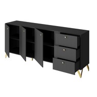 Технические характеристики: Комод КД-1 RENO (черный). Элегантный и многофункциональный комод. Модель сочетает в себе современные технологии, продуманную эргономику и лаконичный дизайн, идеально вписываясь в различные стили интерьера - от современного минимализма до скандинавского направления. Комод объединяет три выдвижных ящика и три распашные дверцы, за которыми скрывается удобное внутреннее пространство с полками. Фрезеровка на фасаде добавляет модели рельефность и визуальную глубину, создавая игру света и тени на поверхности. Все элементы оснащены доводчиками для плавной и бесшумной работы. Регулируемые по высоте опоры - 15 см. Комод КД-1 RENO - это гармоничное сочетание технологий, функциональности и эстетики, где каждая деталь, от доводчиков до фрезеровки, подчинена идее создания совершенной мебели для современного дома.