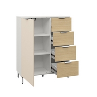Особенности: Комод Марвэл 16.234.01 выполнен в стильном сочетании белого корпуса с яркими фасадами в цвете сатин и плэйн. Комод состоит из четырех выдвижных ящиков и отсека с выдвижной металлической штангой и дверцей. Ящики оснащены шариковыми направляющими. Металлические опоры с регулировкой. Фасады оснащены торцевыми металлическими ручками. Можно компоновать с другими модулями из серии мебели Марвел. Реальный цвет товара может отличаться от цвета товара на фотографии. Поставляется в разобранном виде.