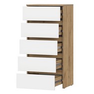 Особенности: Комод Некст 1 с 5 ящиками (дуб золотой/белый) оснащен шариковыми направляющими и скрытой фурнитурой.