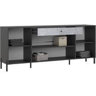 Особенности: Комод Оливия металл (графит, мрамор глянец) выполнен в современном дизайне. Вместительные ящики позволят организовать место для хранения всех необходимых предметов. Тип направляющих - без доводчиков. Тип петель - без доводчиков. Направляющие ящиков - шариковые. Материал ручек - пластик. Материал ножек - металл. Максимальная нагрузка на поверхность - 30 кг. Максимальная нагрузка на ящик - 3 кг. Максимальная нагрузка на полку - 4 кг.