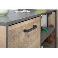 Особенности: Комод Трувор 13.307.01 N выполнен в цвете дуб гранж песочный с контрастной кромкой в цвете интра. Комод состоит из открытых полок, выдвижного ящика и отсека с полками и дверцей. Направляющие выдвижных ящиков скрытого монтажа. Можно компоновать с другими модулями из серии мебели Трувор. Реальный цвет товара может отличаться от цвета товара на фотографии. Поставляется в разобранном виде.