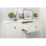 Особенности: Комод Валенсия 13.309.01 представляет собой идеальное решение для организации хранения вещей в интерьере. Он состоит из двух боковых секций с распашными дверцами и трех выдвижных ящиков по центру, что обеспечивает функциональность и удобство. Светлый и стильный дизайн комода помогает упорядочить пространство, добавляя уют и гармонию в комнату. Комод идеально подходит для хранения одежды, белья и различных аксессуаров. Вся лицевая фурнитура выполнена из металла, а графичное сочетание черного и хромированных деталей эффектно расставляет акценты на мебели. Фасады изготовлены из МДФ с матовой ПВХ-пленкой, а геометричный рисунок фрезеровки создает красивый светотеневой эффект. Это решение делает мебель визуально более мягкой, комфортной и расслабляющей. Высокие опоры обеспечивают удобство уборки с помощью робота-пылесоса. Универсальная сборка позволяет установить комод на любую сторону. Все выдвижные ящики и петли оснащены доводчиками. Можно компоновать с другими модулями из серии мебели Валенсия. Поставляется в разобранном виде.