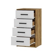 Дополнительно: Высокий комод Мия КМ-02 отлично справится с вопросом хранения одежды в сложенном виде, вещей, постельного белья, игрушек, сезонных аксессуаров и всего того, что должно храниться в порядке. 4 выдвижных ящика оснащены роликовыми направляющими и удобными ручками. Регулируемые опоры позволяют установить комод даже на неровном полу. Приятное цветовое решение с древесным рисунком. Компактный размер. Роликовые направляющие на ящиках. Максимальная нагрузка на ящик - 5 кг.