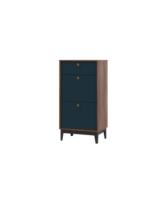 Технические характеристики: Комод КМ-4 BRASS (каштан арвадона, синий). Элегантный комод, воплощающий гармонию насыщенных оттенков и передовой инженерной мысли. Модель сочетает глубокий тон каштана арвадона с выразительными акцентами, создавая эффектный контраст в интерьере. Две элегантные распашные дверцы скрывают просторное внутреннее пространство c полками и один выдвижной ящик с механизмом полного выдвижения. Скрытые петли с доводчиком создают бесшумное закрывание и чистые линии фасадов. Ручки из металла с патинированным золотым покрытием. Опоры металлические, высотой 15 см. Комод КМ-4 BRASS — это синтез инновационных технологий и художественного дизайна, где каждая деталь работает на создание премиального образа и безупречной функциональности.