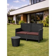 Комплект 2 садовых кресла, двухместный диван и столик под ротанг СадКо (темно-серый с коричневыми подушками)