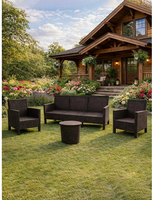 Комплект 2 садовых кресла, трехместный диван и столик под ротанг СадКо (темно-коричневый)