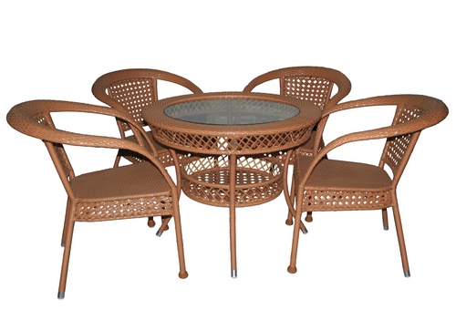 Технические характеристики: Комплект садовой мебели для дачи. Изготовлен из искусственного ротанга на стальном каркасе. Столешница из закаленного стекла. Изделие устойчиво к влаге и ультрафиолетовым лучам.