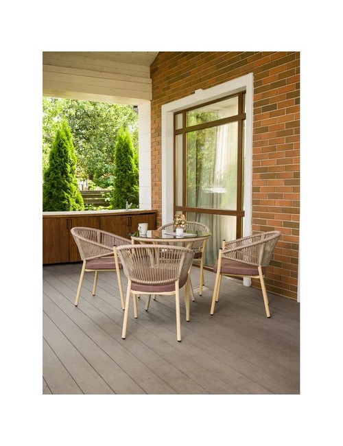 Технические зарактеристики: Комплект мебели 4 стула Латте и круглый стол Ялта (бежевый). Элегантный и практичный комплект мебели для создания уютной зоны отдыха в саду, на террасе или в просторной гостиной. В набор входят стильный журнальный стол со стеклянной столешницей и четыре удбных стула - все, что нужно для комфортного размещения компании. Благородный оттенок искусственного ротанга придает комплекту природную теплоту и визуальную легкость. Изящное плетение создает уютную, расслабленную атмосферу, характерную для эко-стиля, бохо, скандинавского дизайна и современной классики. Стол со стеклянной столешницей визуально облегчает композицию и позволяет любоваться красивым плетением основания. Комплект мебели 4 стула Латте и круглый стол Ялта создаст гармоничное и комфортное пространство для отдыха с семьей и друзьями, объединяя природную эстетику и современные технологии.